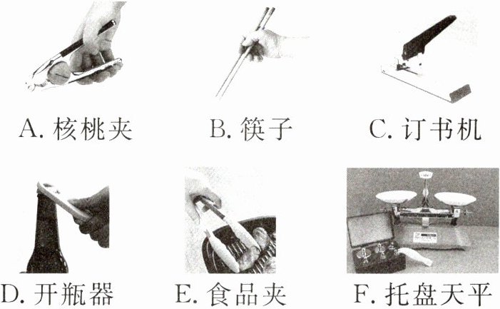 1. 下列工具在使用时,属于省力杠杆的是____,属于费力杠杆的是____,属于等臂杠杆的是____。