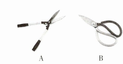 3. 如图所示是两种类型的剪刀,请为园艺师傅选择一把剪树枝的剪刀,你会选择____(填“A”或“B”)剪刀,这样选择的目的是____(填“省距离”或“省力”)。在手握手柄的位置不变时,为了更省力,树枝应更____(填“靠近”或“远离”)支点。