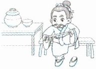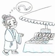 In the State of Zheng, there is a man. △ He measures(量)his foot with a rope and goes out happily to buy shoes.