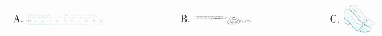@@B 【点拨】由第一段中“He measures (量) his foot with a rope”可知,他用绳子量脚,故选 B。