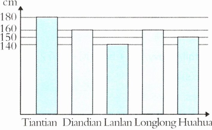 - **跨学科·数学** 新学期开始了,Mr Rong 对以下同学的身高进行了统计。根据统计图,判断下列句子正(T)误(F)。