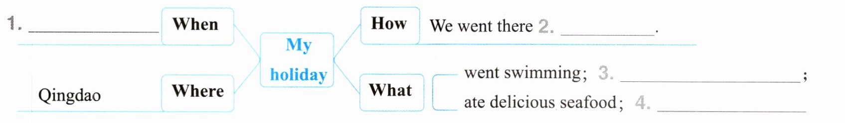 学校组织以“A Wonderful Trip”为题的征文比赛。请根据思维导图提示帮 Lanlan 写一篇文章介绍她难忘的暑假旅行经历及感受。(不少于 60 词)