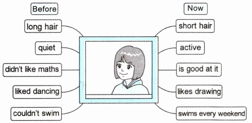 she is active.@@didn't like maths. Now, she is good at it.@@Before, Diana liked dancing. Now, she likes drawing.