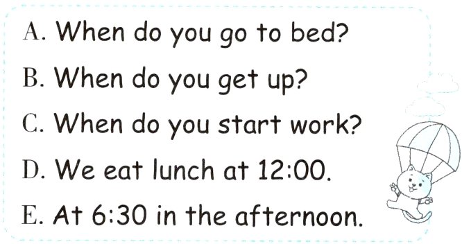 3. We go back to school at 2:00 ____________ (after/on) lunch.