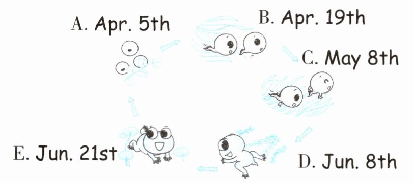 任务二: C [点拨]根据循环图可知,蝌蚪变成青蛙以后,青蛙会再次进行产卵开始新一轮的循环。故选C。