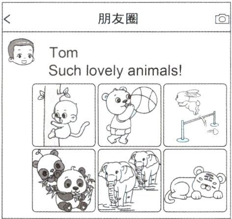 一、根据Tom的朋友圈照片,写单词补全短文。