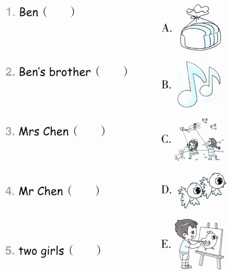 二、听句子,根据所听内容,判断下列图片正(T)误(F)。