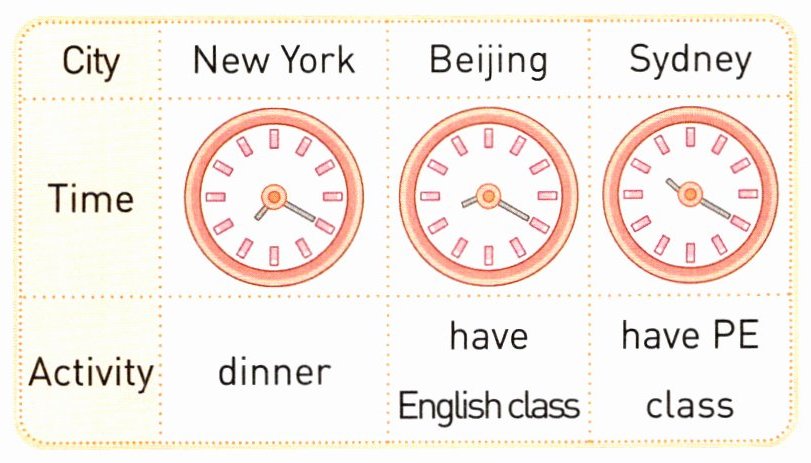 —It's 8:20 a.m. It's time to have English class.@@—What time is it in Sydney?