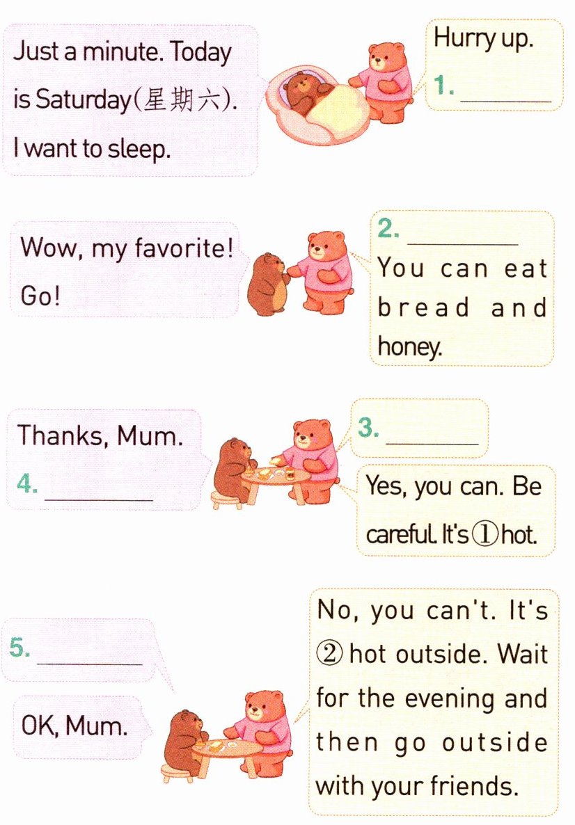四 【主题情境:小熊的日常】阅读绘本,完成任务。