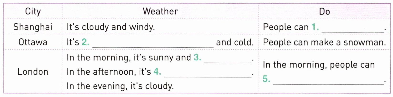( )1. What's the weather like?