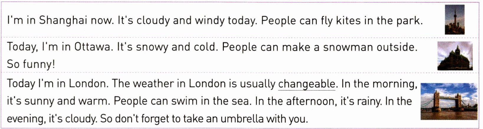 主题:自然生态-不同城市的天气 语篇类型:记叙文