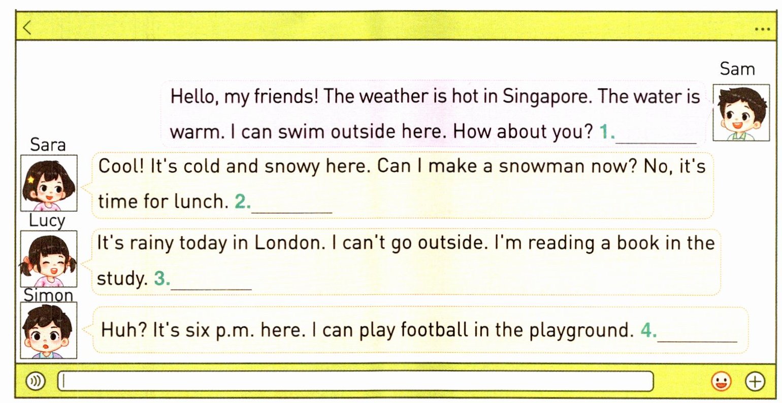 三 读一读 Sam 与朋友们的聊天内容,完成任务。