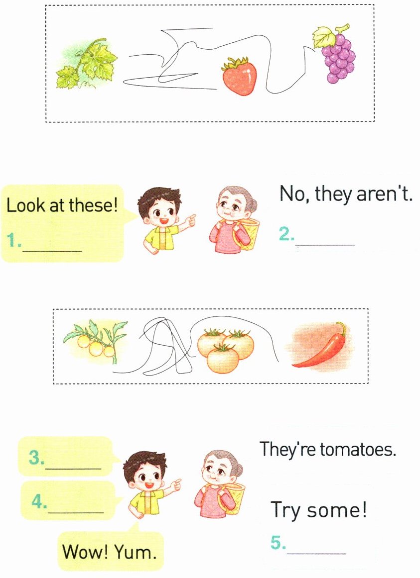 [四 新题型·探究题【主题情境: 观察植物】观察植物的叶子和果实, 补全对话。