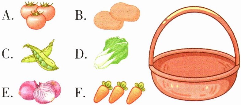 (一)将Diandian采摘的蔬菜的序号填在篮子里。