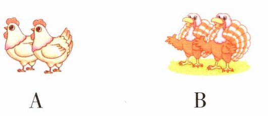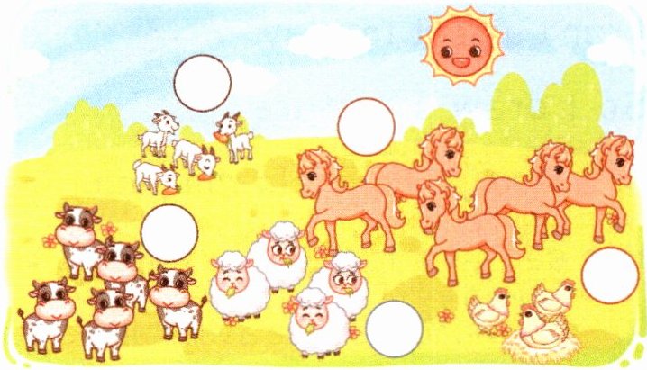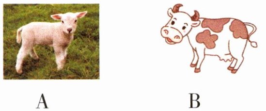 奶牛写1,母鸡写2,马写3,绵羊写4,山羊写5。