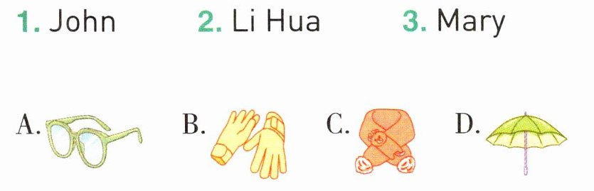 1 - D 2 - A 3 - BC@@the weather is changeable@@scarf@@coat
