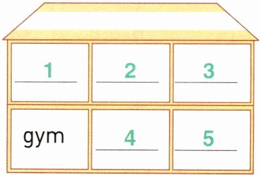 1. computer room 2. teachers' office 3. library 4. music room 5. art room