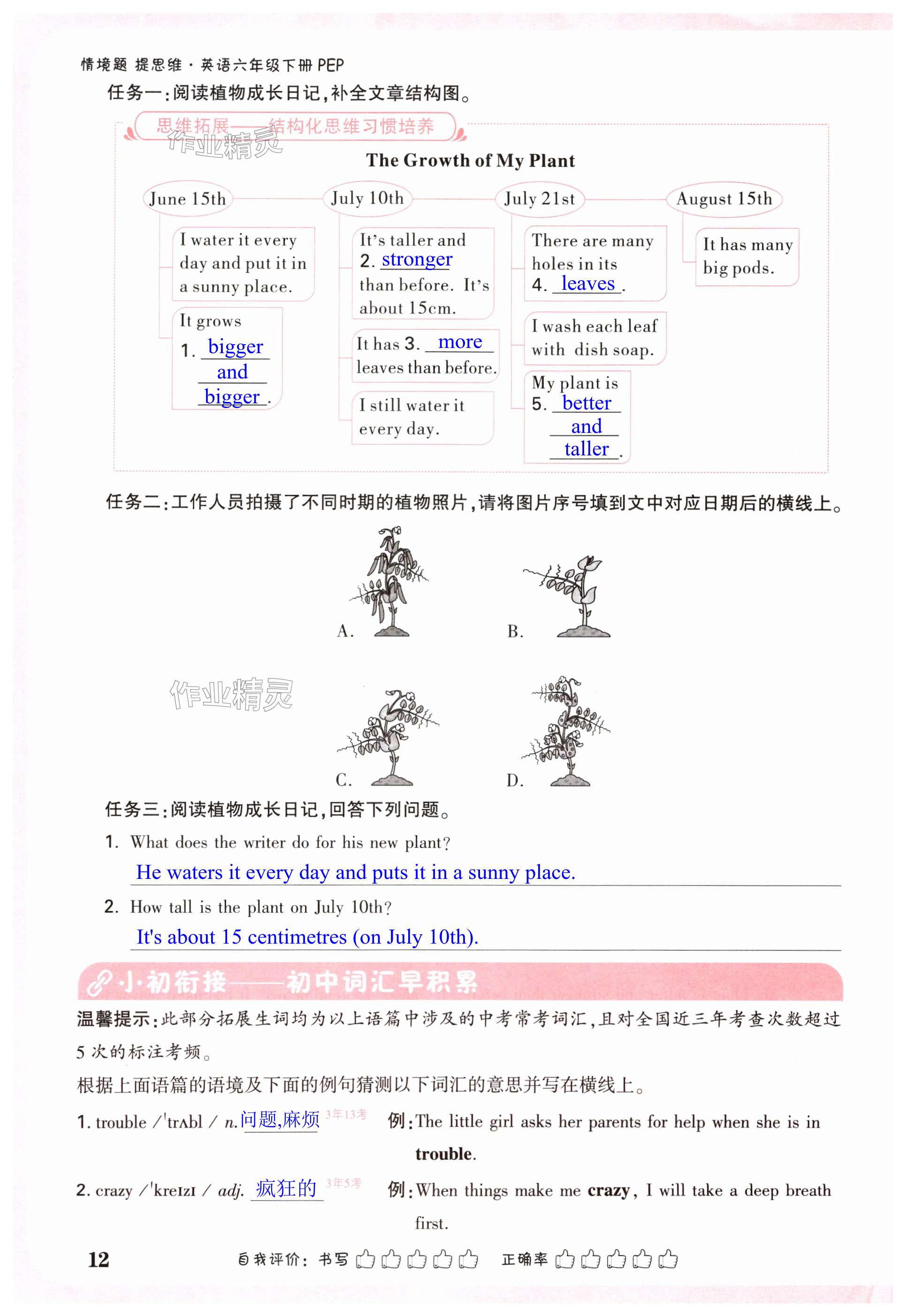 注:目前有些书本章节名称可能整理的还不是很完善,但都是按照顺序排列的,请同学们按照顺序仔细查找。练习册 2025年小白鸥情境题六年级英语下册人教版 答案主要是用来给同学们做完题方便对答案用的,请勿直接抄袭。