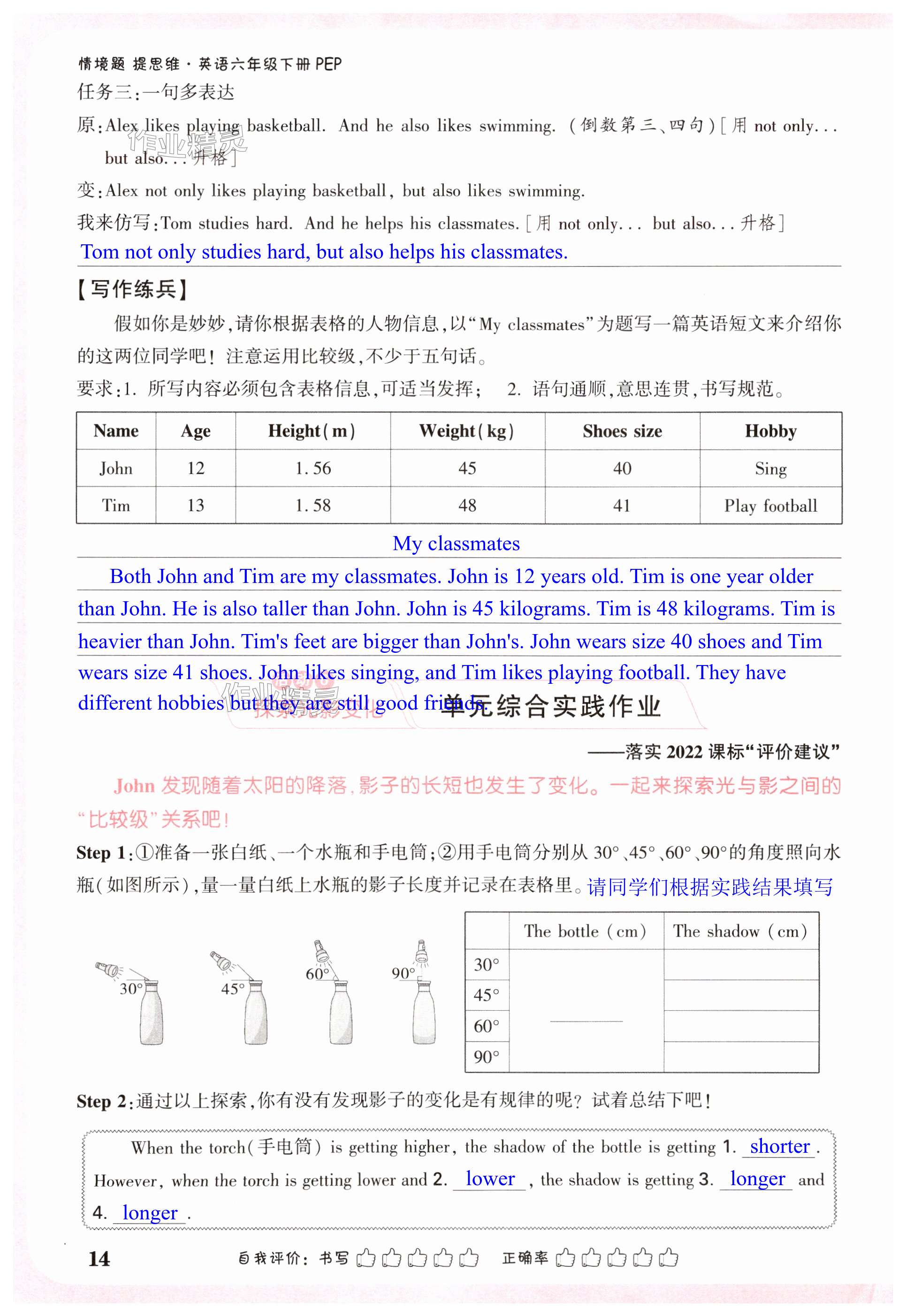 注:目前有些书本章节名称可能整理的还不是很完善,但都是按照顺序排列的,请同学们按照顺序仔细查找。练习册 2025年小白鸥情境题六年级英语下册人教版 答案主要是用来给同学们做完题方便对答案用的,请勿直接抄袭。
