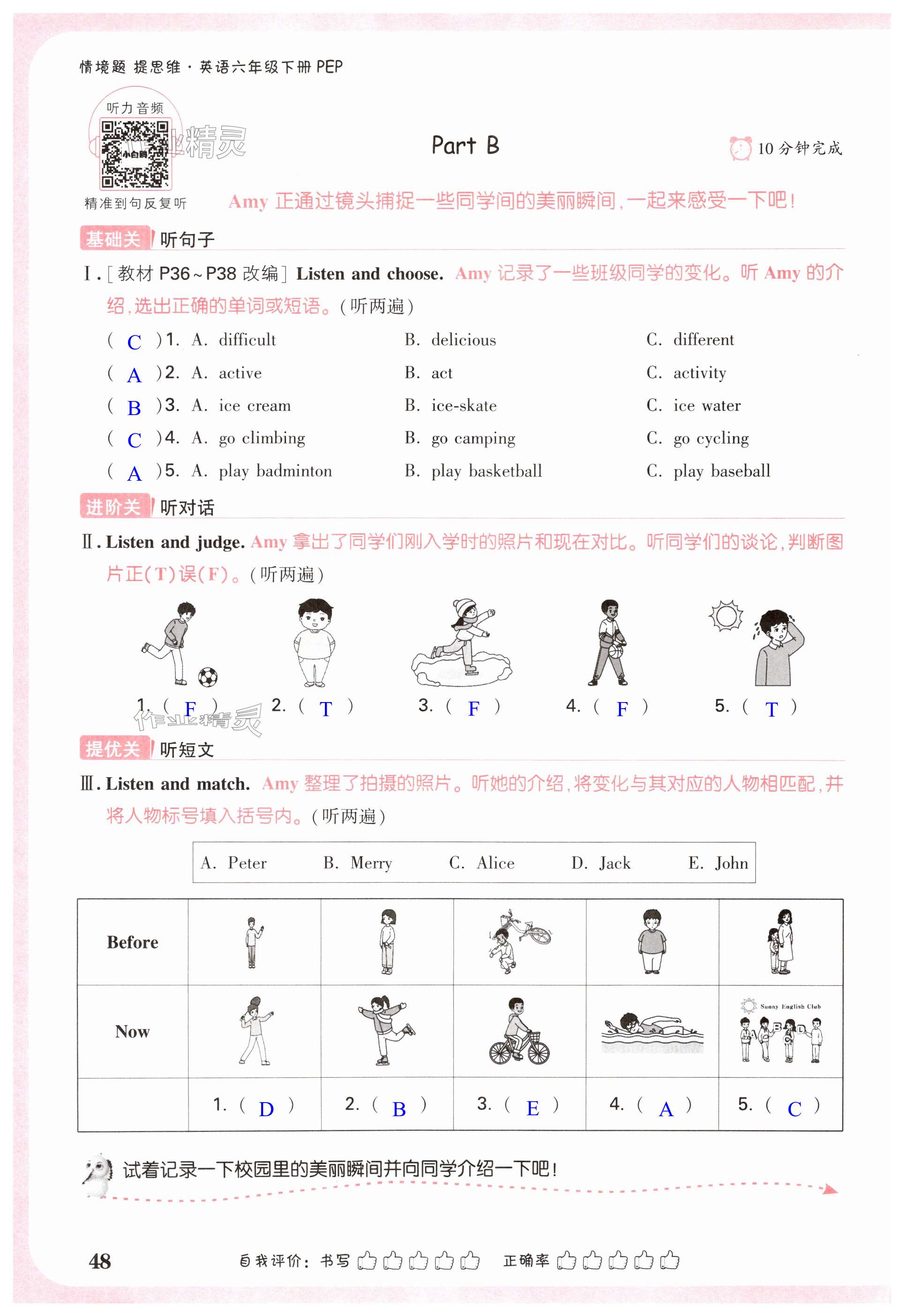 注:目前有些书本章节名称可能整理的还不是很完善,但都是按照顺序排列的,请同学们按照顺序仔细查找。练习册 2025年小白鸥情境题六年级英语下册人教版 答案主要是用来给同学们做完题方便对答案用的,请勿直接抄袭。
