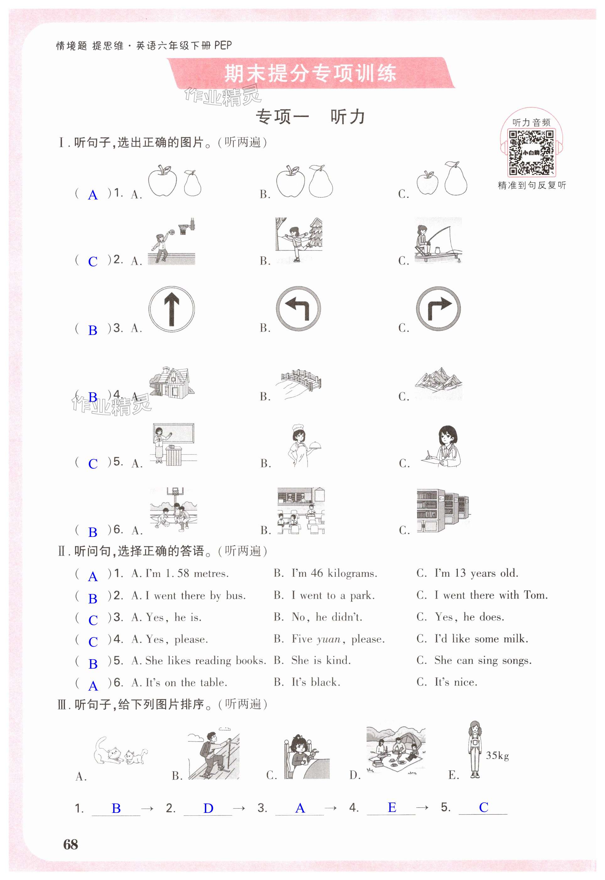 注:目前有些书本章节名称可能整理的还不是很完善,但都是按照顺序排列的,请同学们按照顺序仔细查找。练习册 2025年小白鸥情境题六年级英语下册人教版 答案主要是用来给同学们做完题方便对答案用的,请勿直接抄袭。