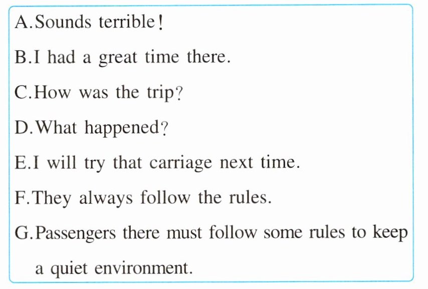 A: 48 Next time, if possible, you’d better choose the quiet carriage (车厢).