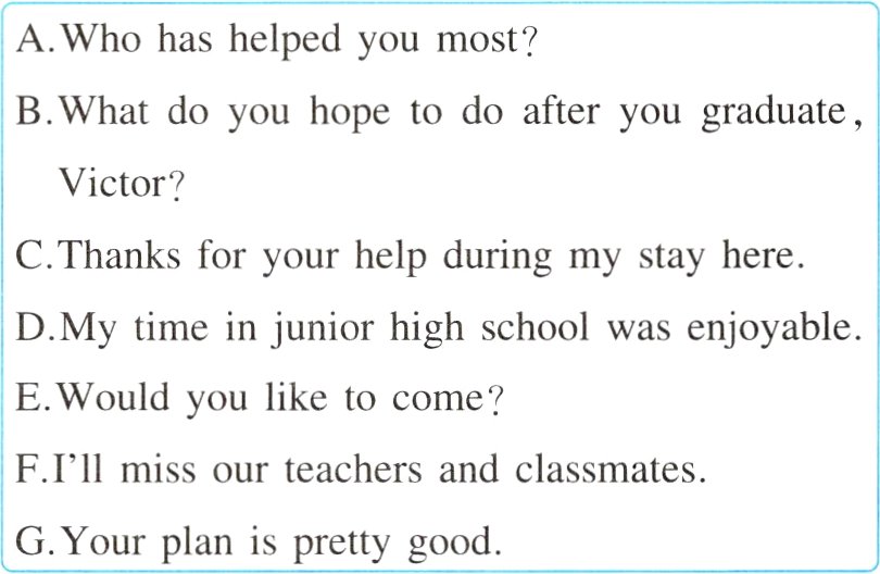 B:Good afternoon, Victor! We are leaving junior high school after the exams. I feel very sad.