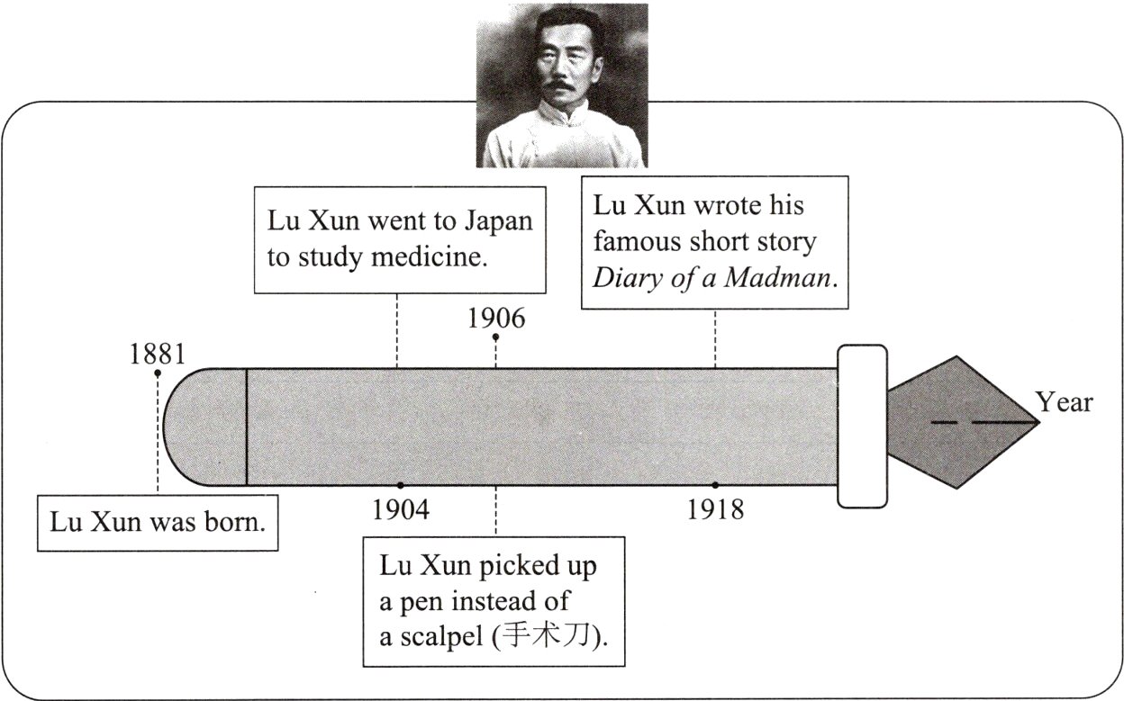 This year marked the 144th anniversary of the great writer's birth. Born on Sept. 25th, 1881, his real name is Zhou Shuren. He once dreamed of being a doctor. In 1904, he went to study in a Japanese college as his father died of illness. However, in the early 20th century, Lu Xun found that there were many problems in Chinese society. The minds of Chinese were numb (麻木的). Most Chinese were just followers without thinking. So in 1906 he gave up medical study and started writing. He hoped his words could help people. In 1918, he wrote his famous short story Diary of a Madman. It was the first Chinese novel published using the everyday language that people spoke, which helped people understand the novel easily. This made Lu Xun a leading Chinese writer.