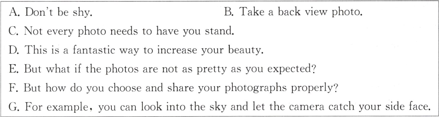 There are many ways for you to avoid looking at the camera. 3_________ Looking into the distance or looking out of the window is also a good choice. If there is nothing to see, you can also choose to close your eyes and enjoy this moment of quietness.