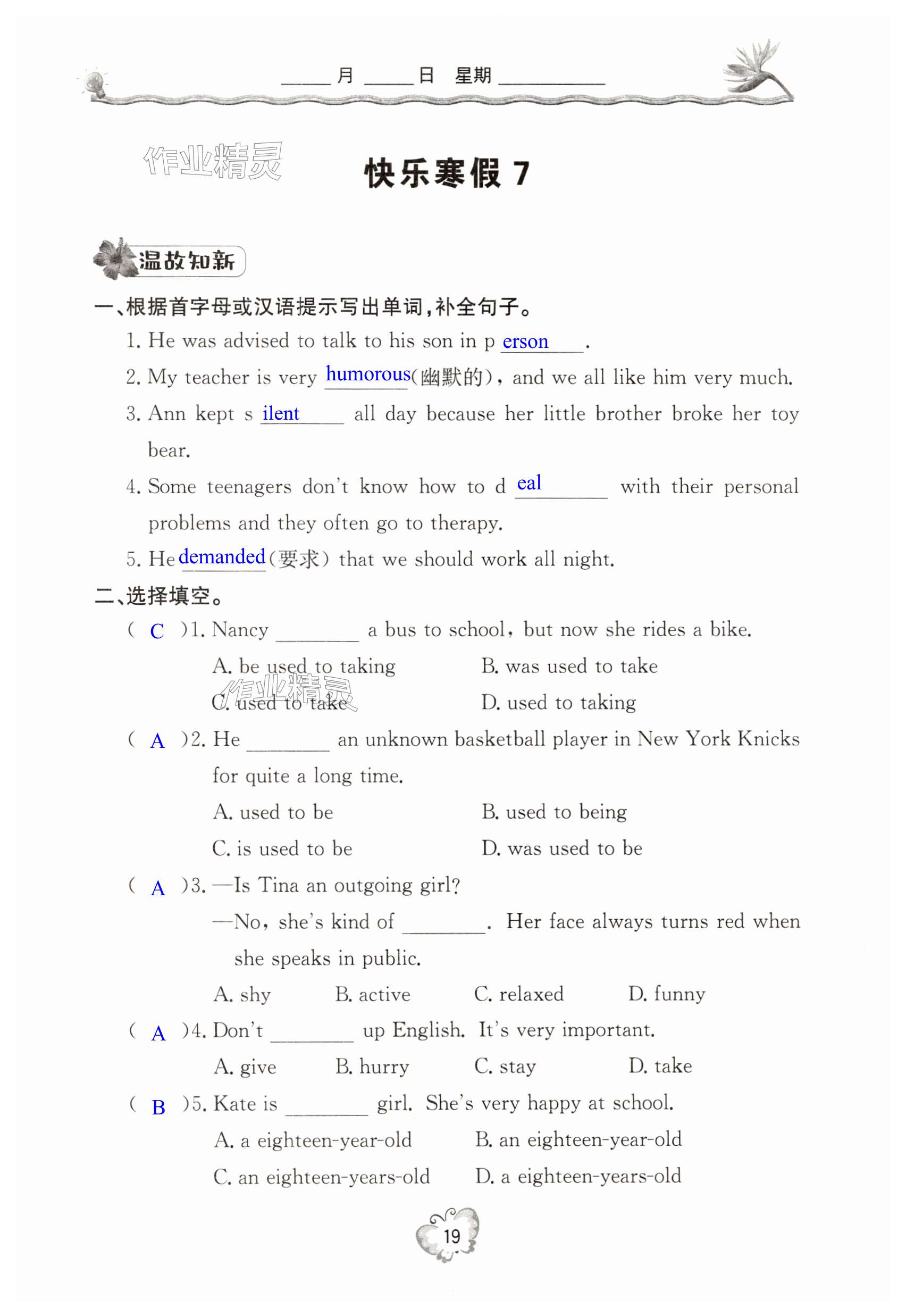 注:目前有些书本章节名称可能整理的还不是很完善,但都是按照顺序排列的,请同学们按照顺序仔细查找。练习册 2025年新课堂寒假生活九年级英语人教版 答案主要是用来给同学们做完题方便对答案用的,请勿直接抄袭。