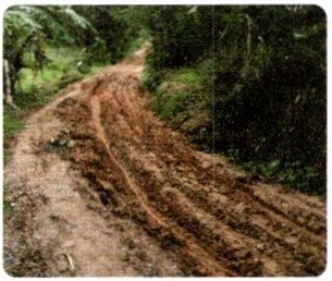 ③道路很平坦、宽阔。 ④因有烂泥而不好走。
