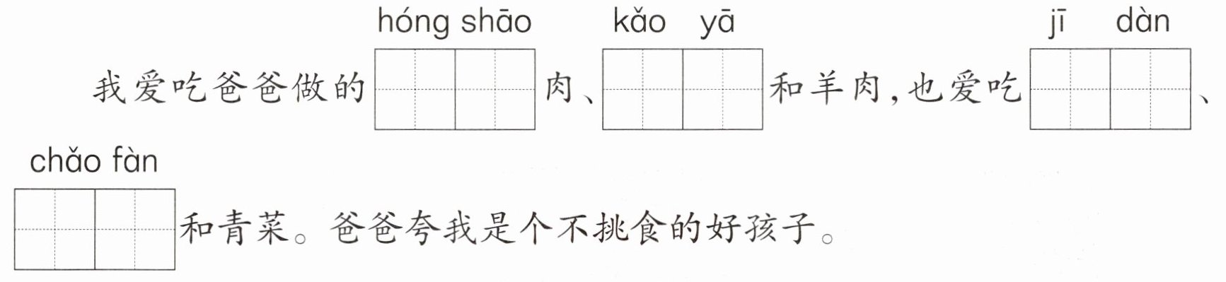 ③爆( bào ) 蘑( mó ) 蒸( zhēng ) ④饺( jiǎo ) 酱( jiàng ) 蛋( dàn )