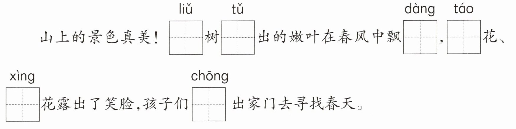 ②遮掩•( yǎn ) 探•出( tàn ) 嫩•芽( nèn )