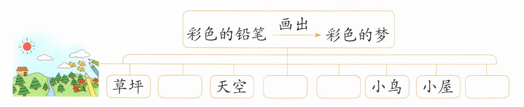 1. 读读文中表示颜色的词语,再结合文段和生活常识给下面的插图涂上恰当的颜色。