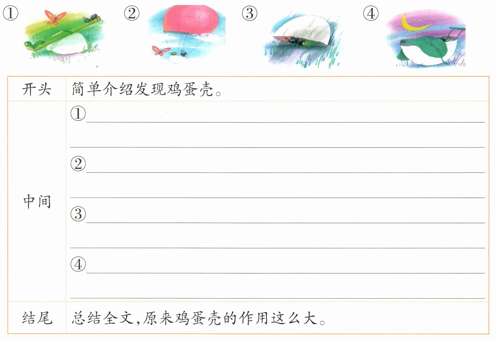 七、把《百变“鸡蛋壳”》这篇写话的提纲补充完整。