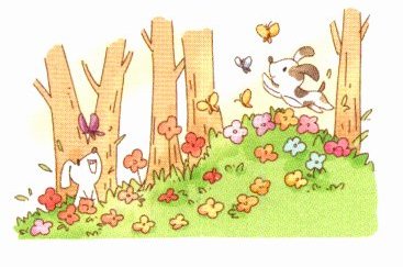 鼹鼠先生来到松鼠太太门前。松鼠太太走出门,看见门前的小路上花朵簇簇,小松鼠、小刺猬和小狐狸在那里快活地蹦啊跳啊。