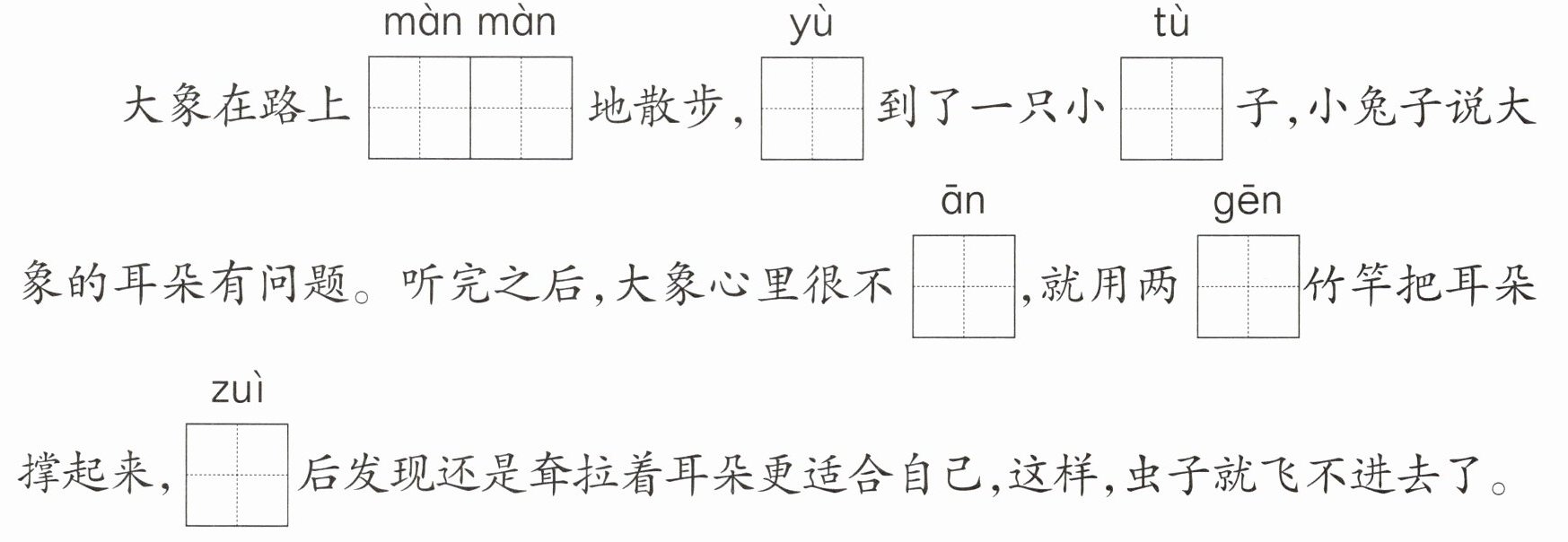 二、读句子,看拼音,写字词。