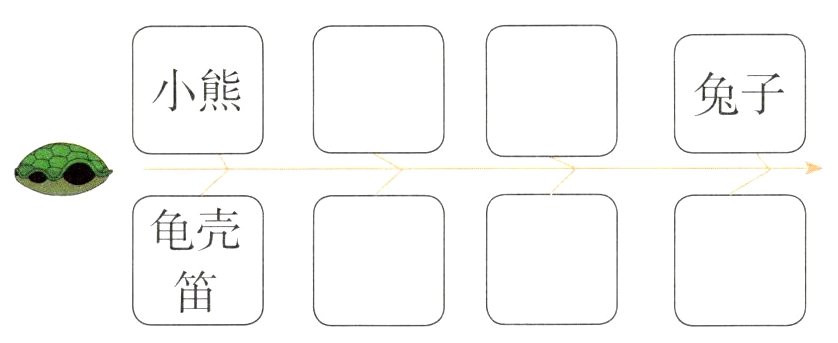 2. 乌龟扔掉的壳都经历了什么呢?根据提示补全下图。