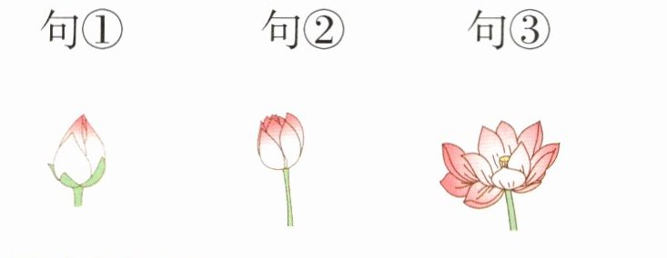 1.(语文要素)欣赏荷花的姿态,①②③句分别写了怎样的画面? 连一连。