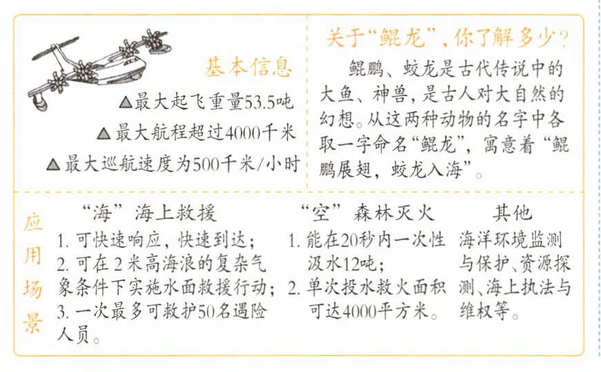 【材料二】水陆两栖飞机“鲲龙”AG600