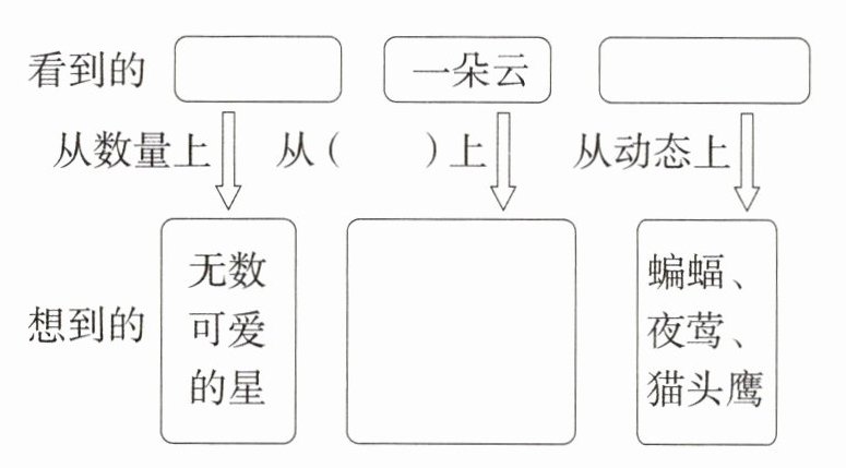一粒星 @@形状 @@无数像山、马、巨人的奇幻的云彩 @@一条黑影 @@新奇有趣、丰富多彩@@有了天窗,孩子们不再局限于自己看到的那一方狭小天地,而是凭想象驰骋。这时,天窗不仅仅是天窗,更是孩子们放飞心灵的窗户