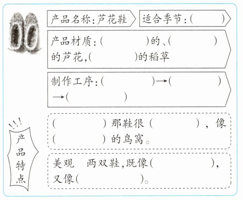 2. 画“____”部分是一个________句,写出了芦花鞋既________又________的特点。