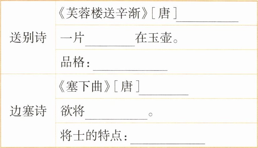 1. 这两句中的“______”字写出了守边将士的果敢与勇猛,“______”字写出了环境的恶劣。两者相衬,表现了守边将士____________________的精神。