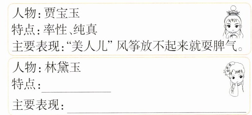 2.课文中还有许多表现宝玉性格特点的句子,请找出一句抄写在下面,并写出它运用的描写方法及表现的特点。