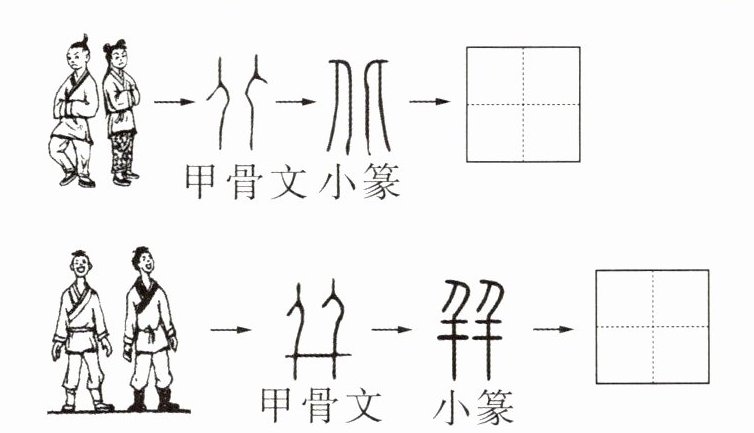 一、观察以下图形和汉字的演变,写出这个汉字。