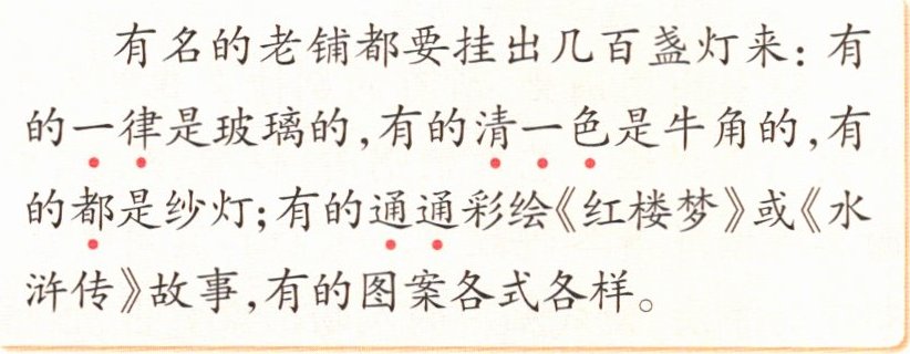 1.加点字词的意思相同,均表示“______,______”,强调了有名的老铺挂出的灯笼____________的特点。