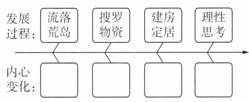 发展过程:流落荒岛 搜罗物资 建房定居 理性思考