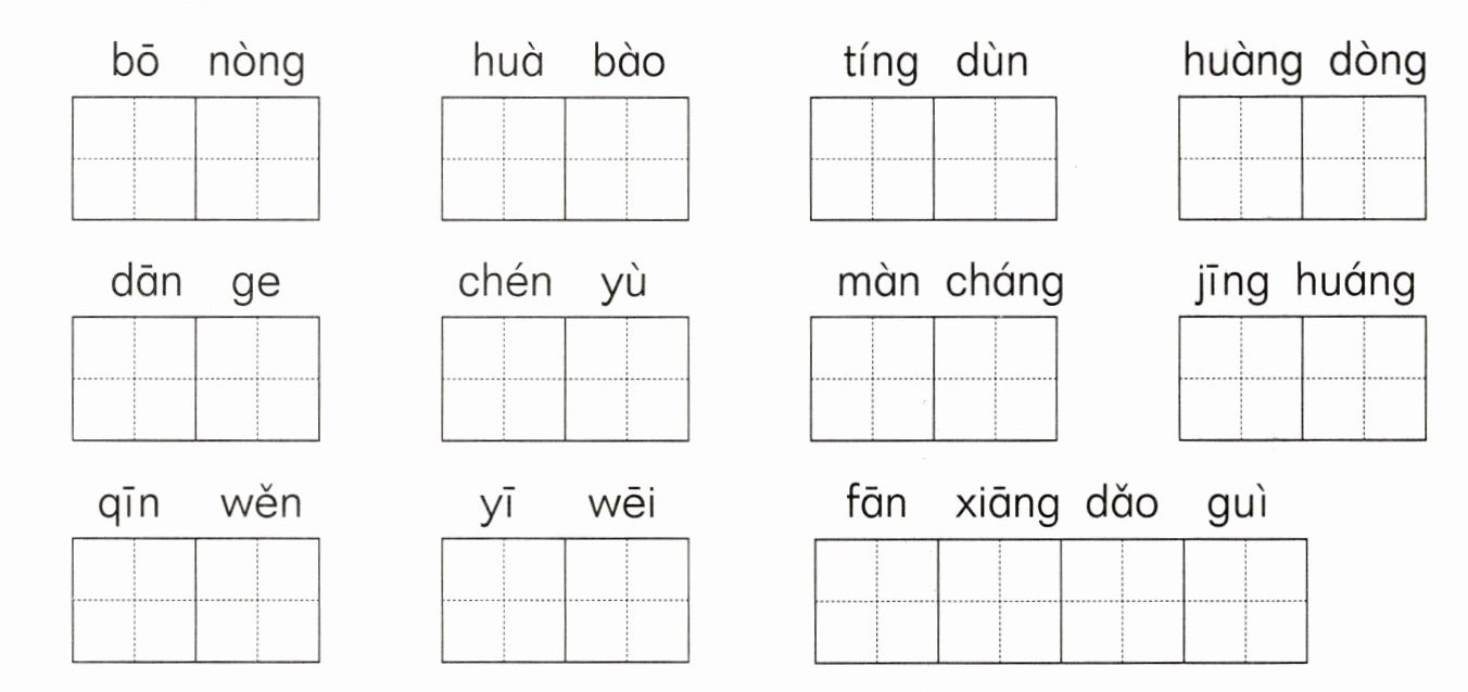 唠叨 叼走 绊倒 搅拌 原谅 晾晒 皇帝 惊惶 喂饭 依偎 逝世 浙江 惆怅 黏稠 怅然 肿胀
