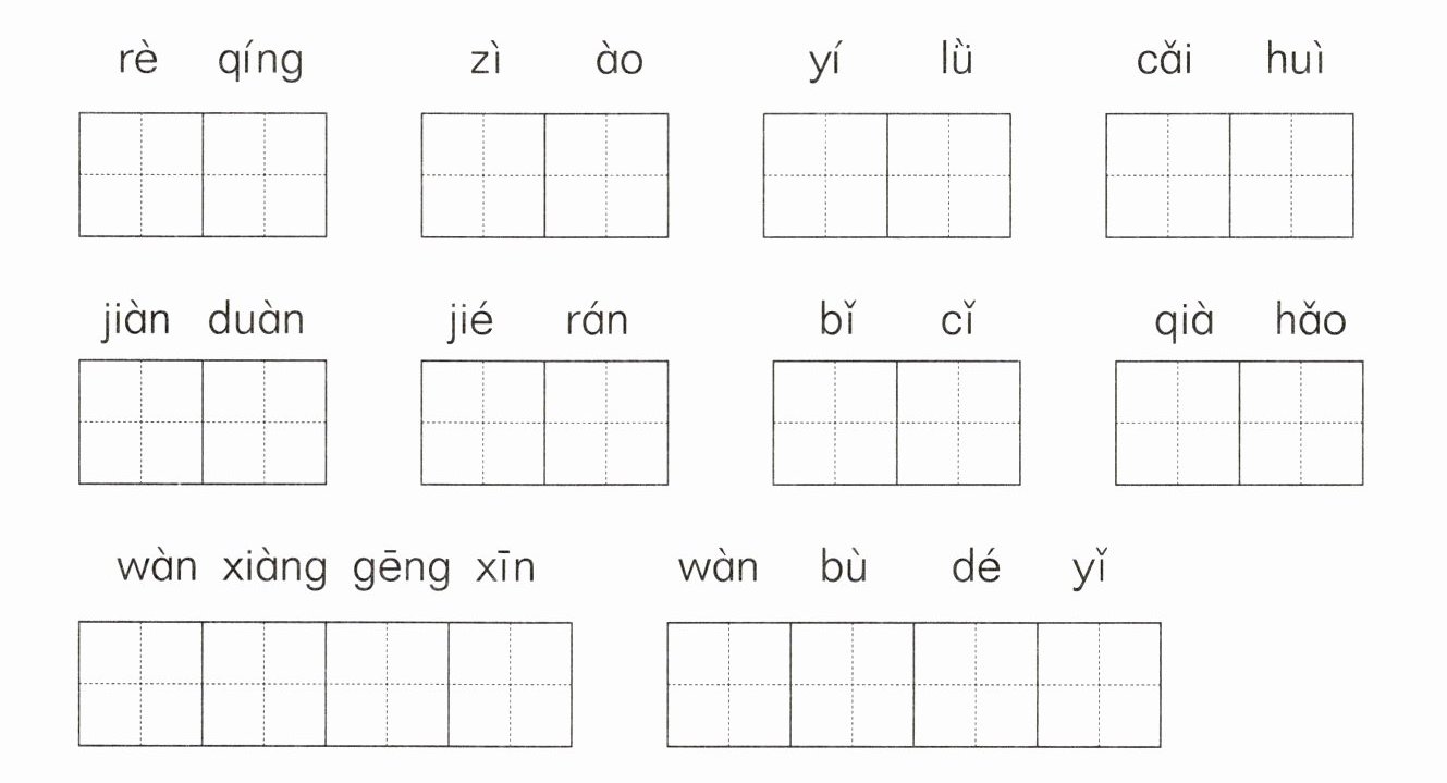 解析:本题考查根据拼音书写词语的能力。要准确拼读拼音,结合课文内容和日常积累写出正确的词语,注意一些词语的写法,如“万象更新”“万不得已”等。