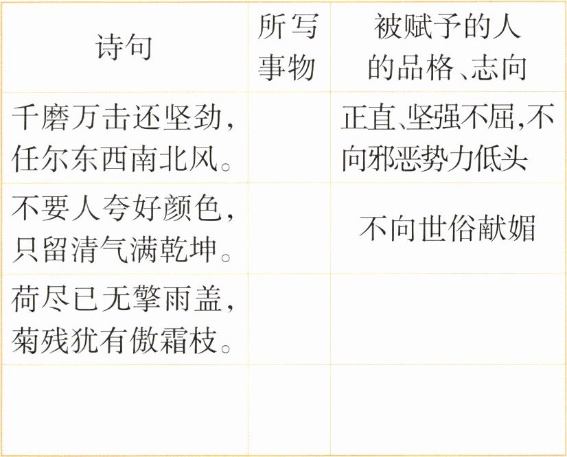 三、先读诗句,填写前三行的空格;再补写一组诗句,并按提示填写它后面的两个空格。